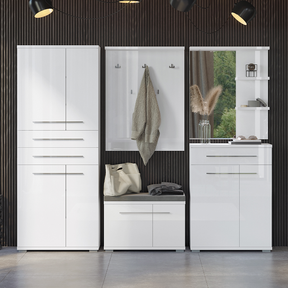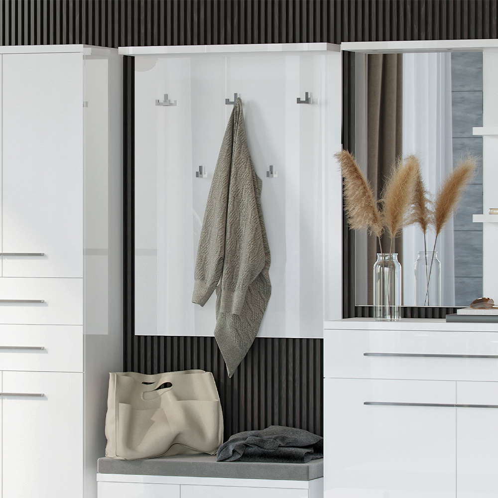 Čiviluk za predsoblje iz kolekcije PIANO sa pet hromiranih kačilica za garderobu i policom