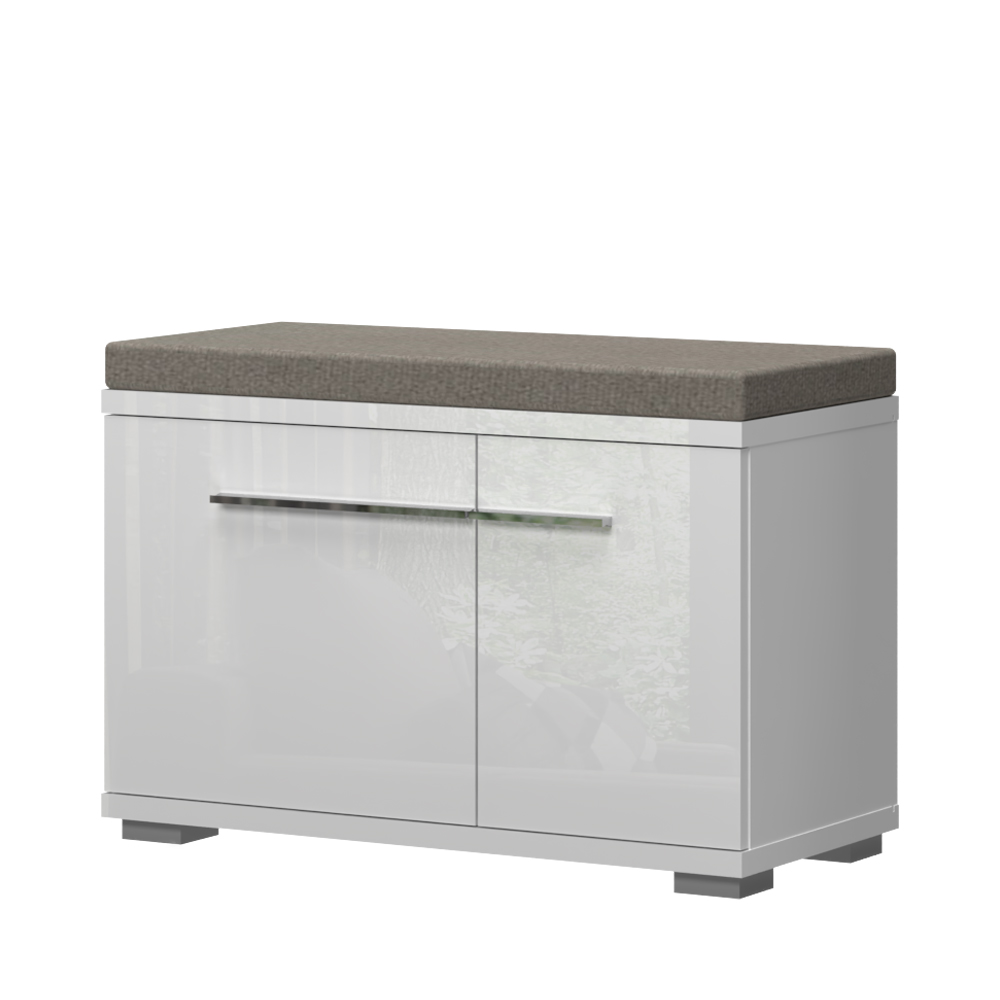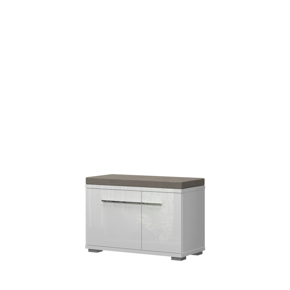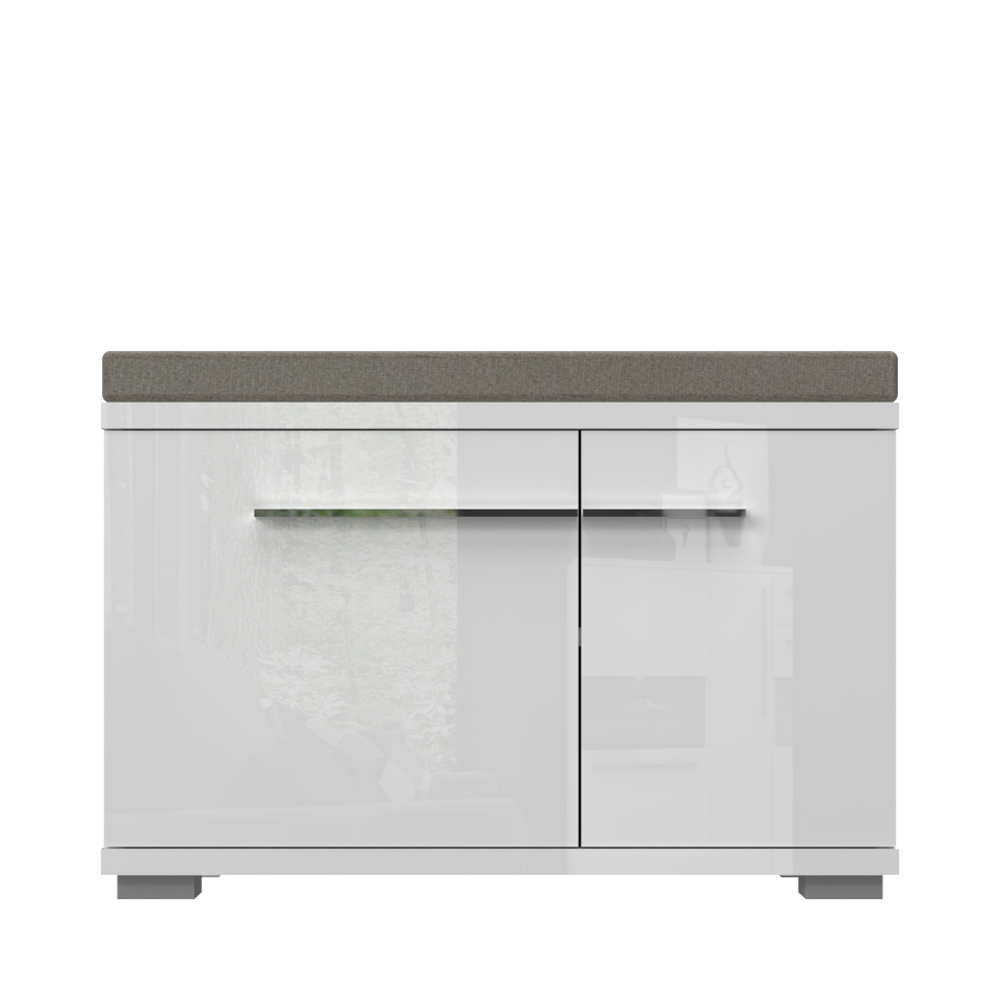 Komoda za predsoblje iz kolekcije PIANO sa dva asimetrična krila i tapaciranim jastukom za sedenje