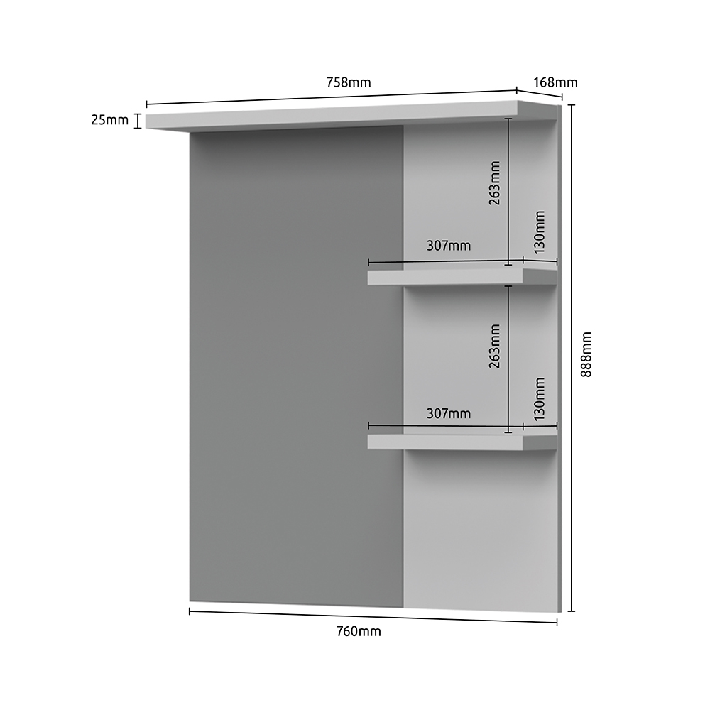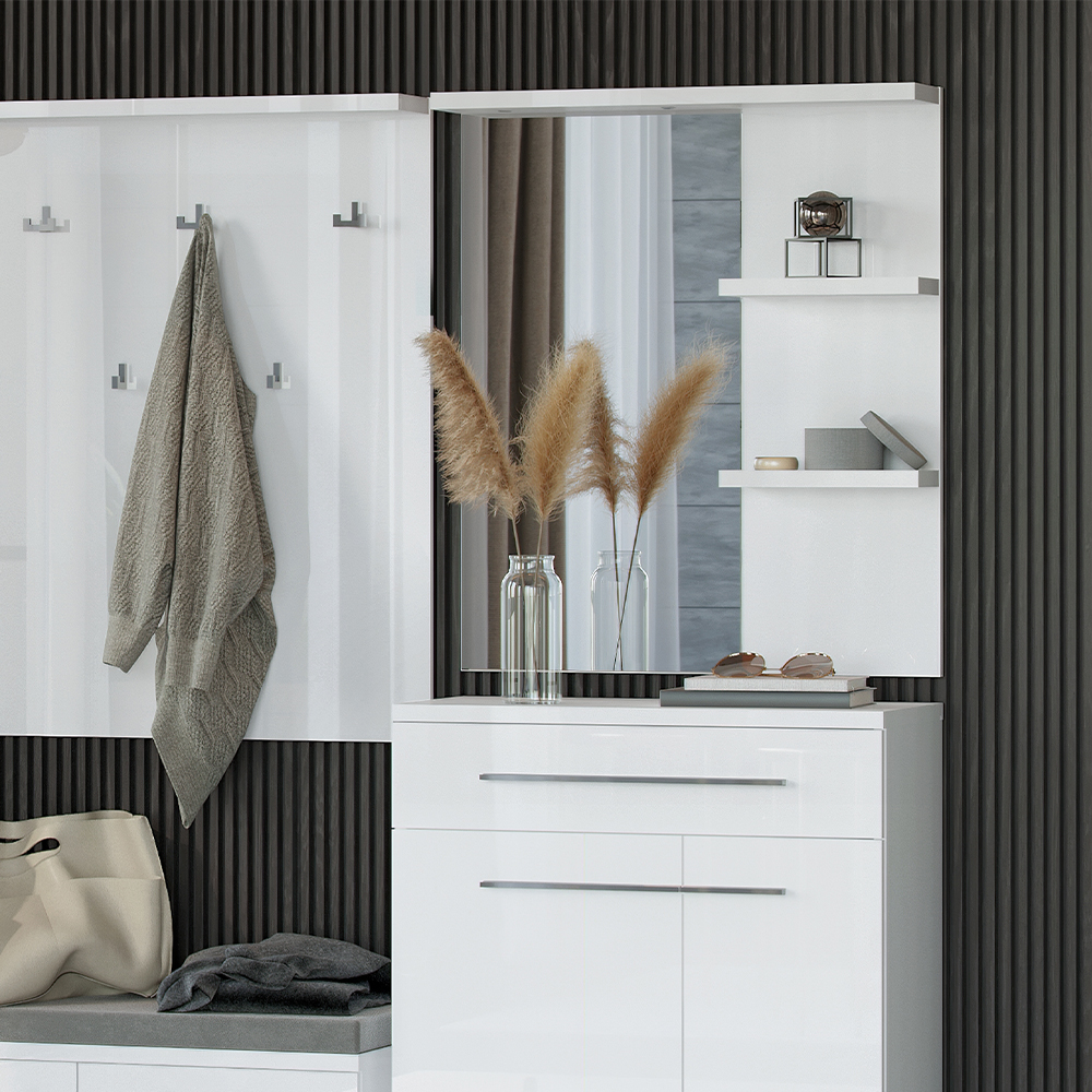 Ogledalo za predsoblje iz kolekcije PIANO sa dve police sa desne strane, modernog dizajna i jednostavne forme.