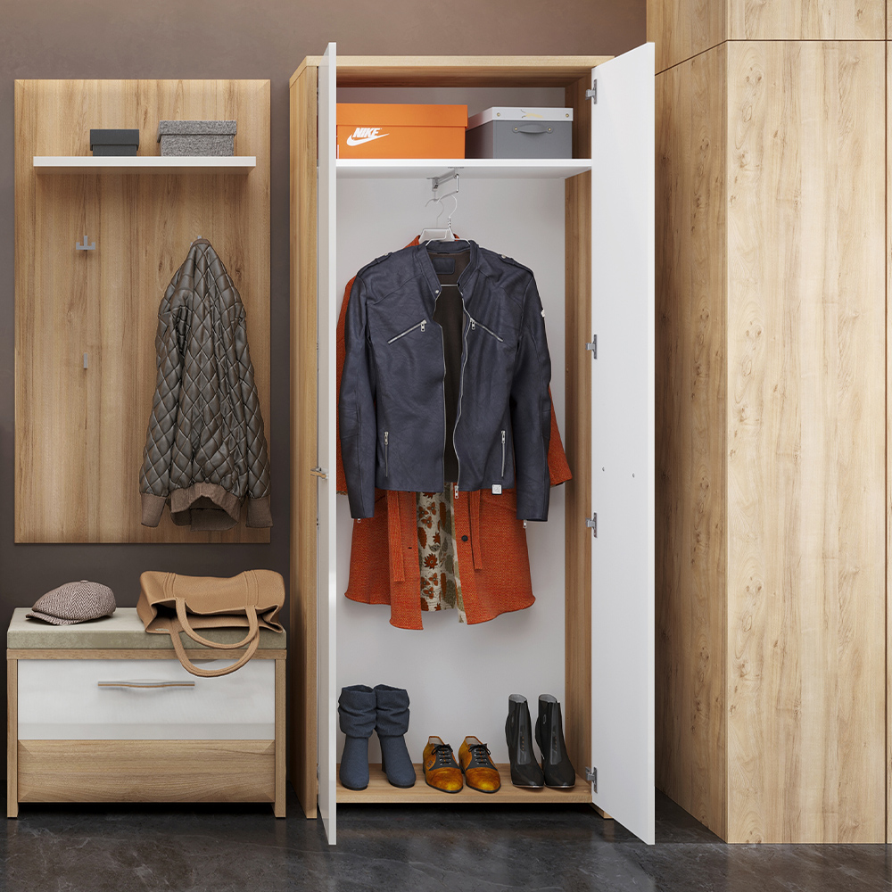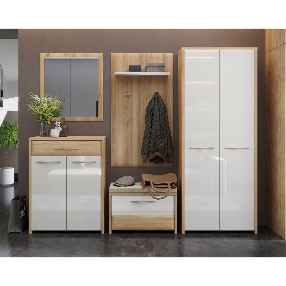 Vitrina za predsoblje iz kolekcije GALA sa dva krila, modernog dizajna i jake geometrijske forme.