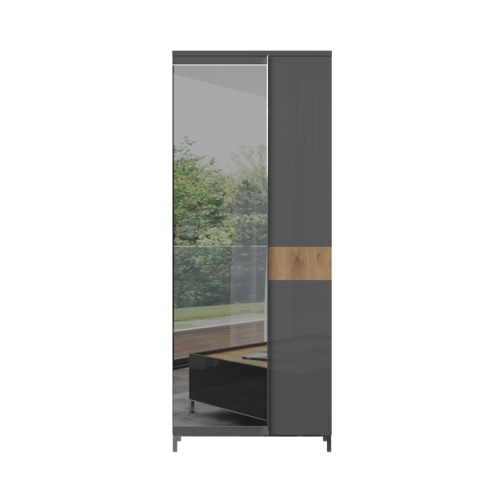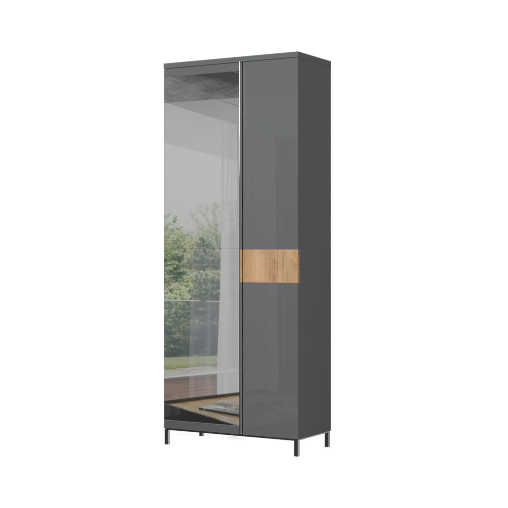 - veće krilo oblozeno je ogledalom , dok uze krilo ima aplikaciju u drvodekoru Pacifik orah u visokom sjaju;