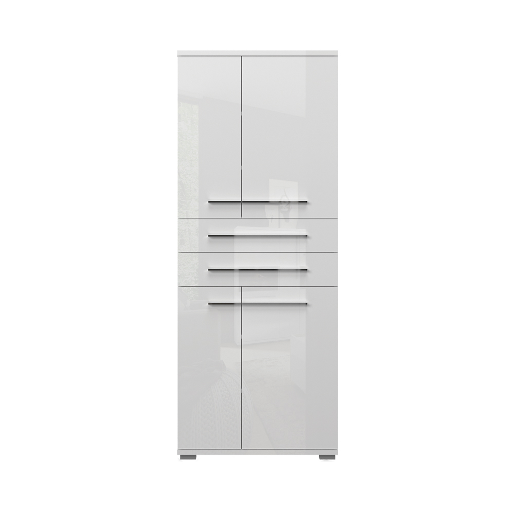 Vitrina za predsoblje iz kolekcije PIANO sa četiri asimetrična krila i dve fioke, svedenog i elegantnog dizajna.