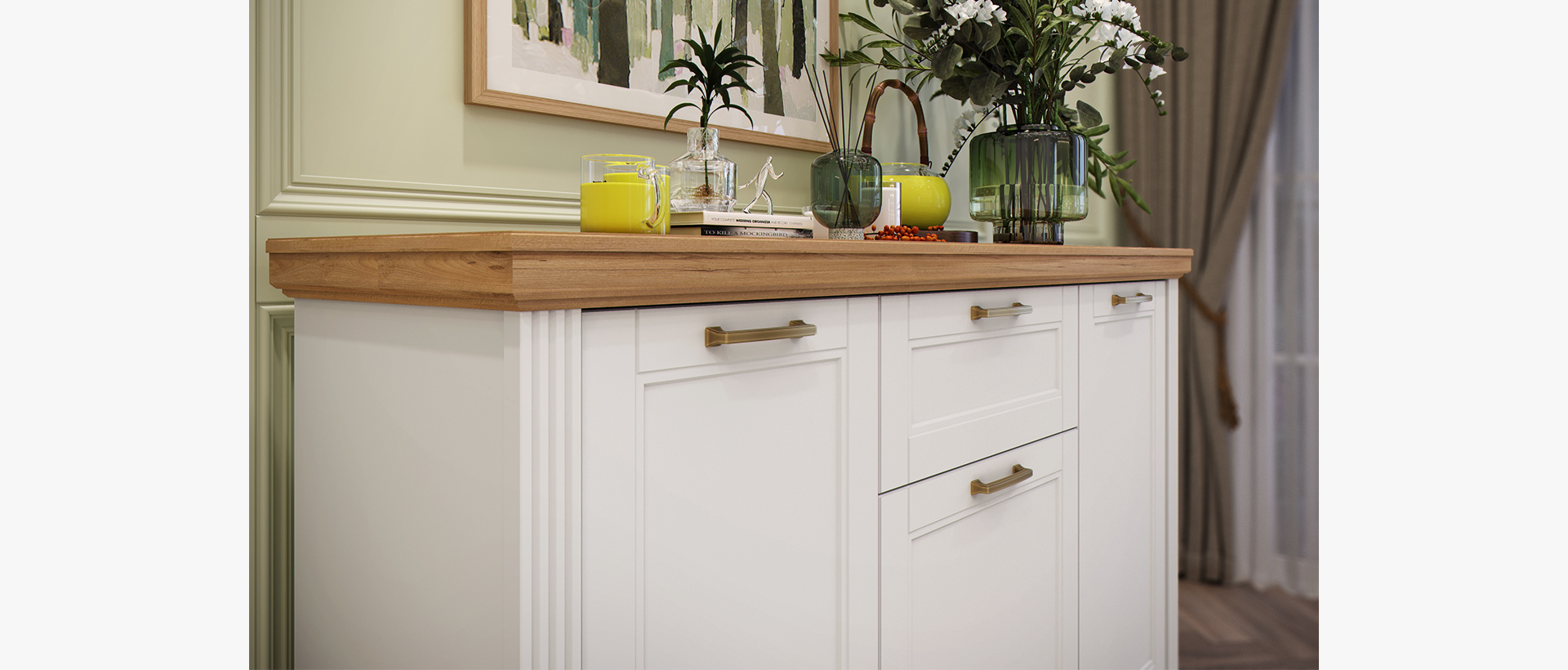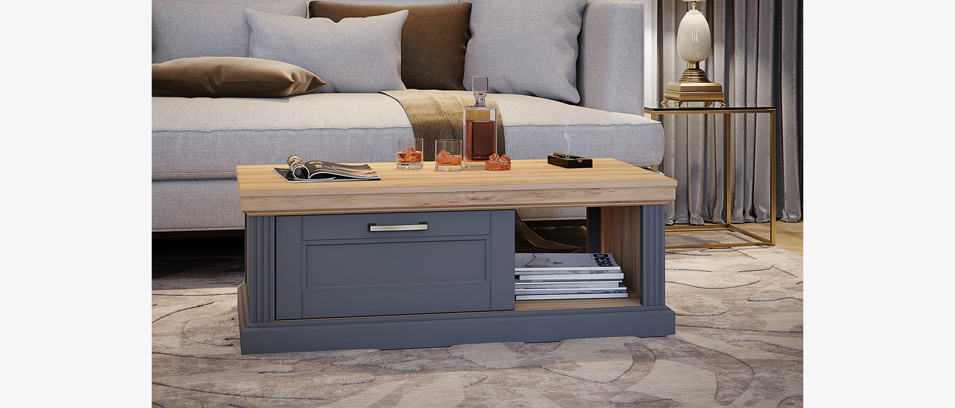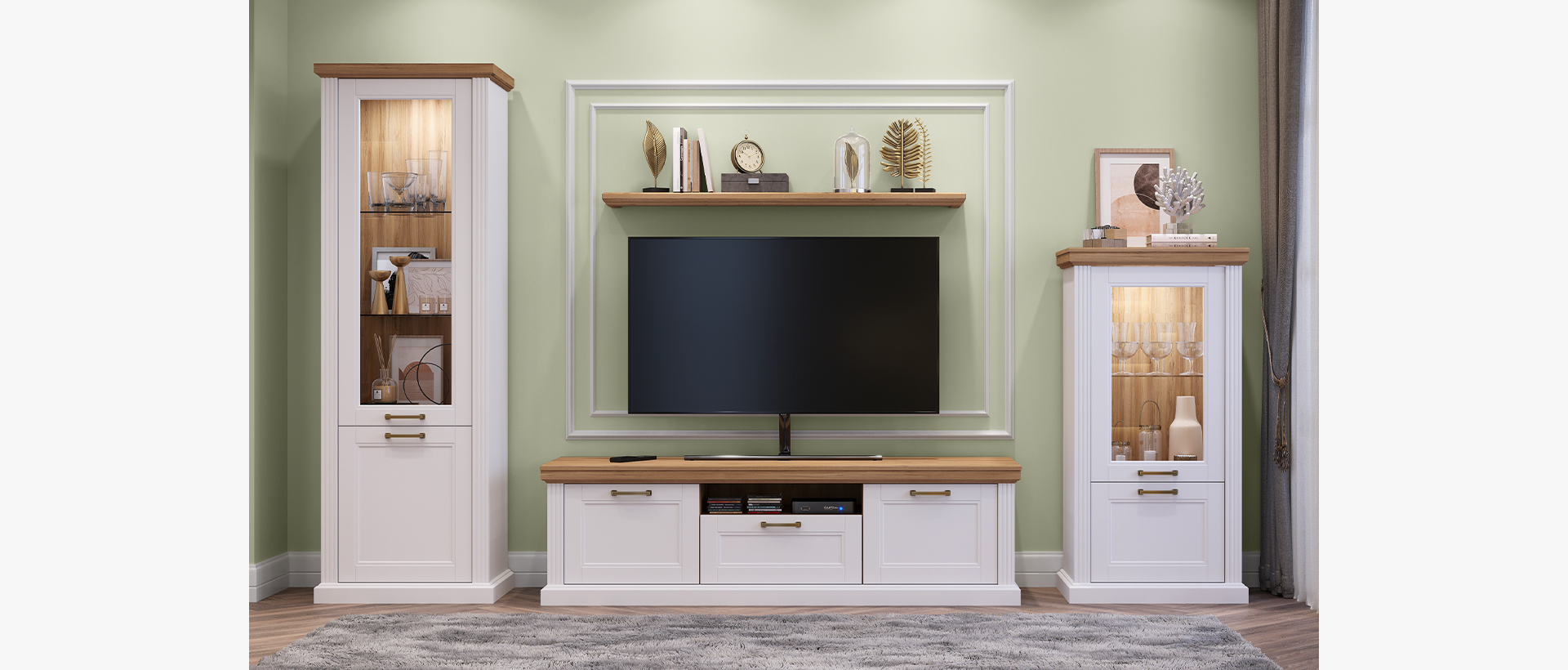 Dnevna soba Tara lakirana UV mat lakom u grafit sivoj ili beloj boji u kombinaciji sa drvo dekorom Pacifik orah