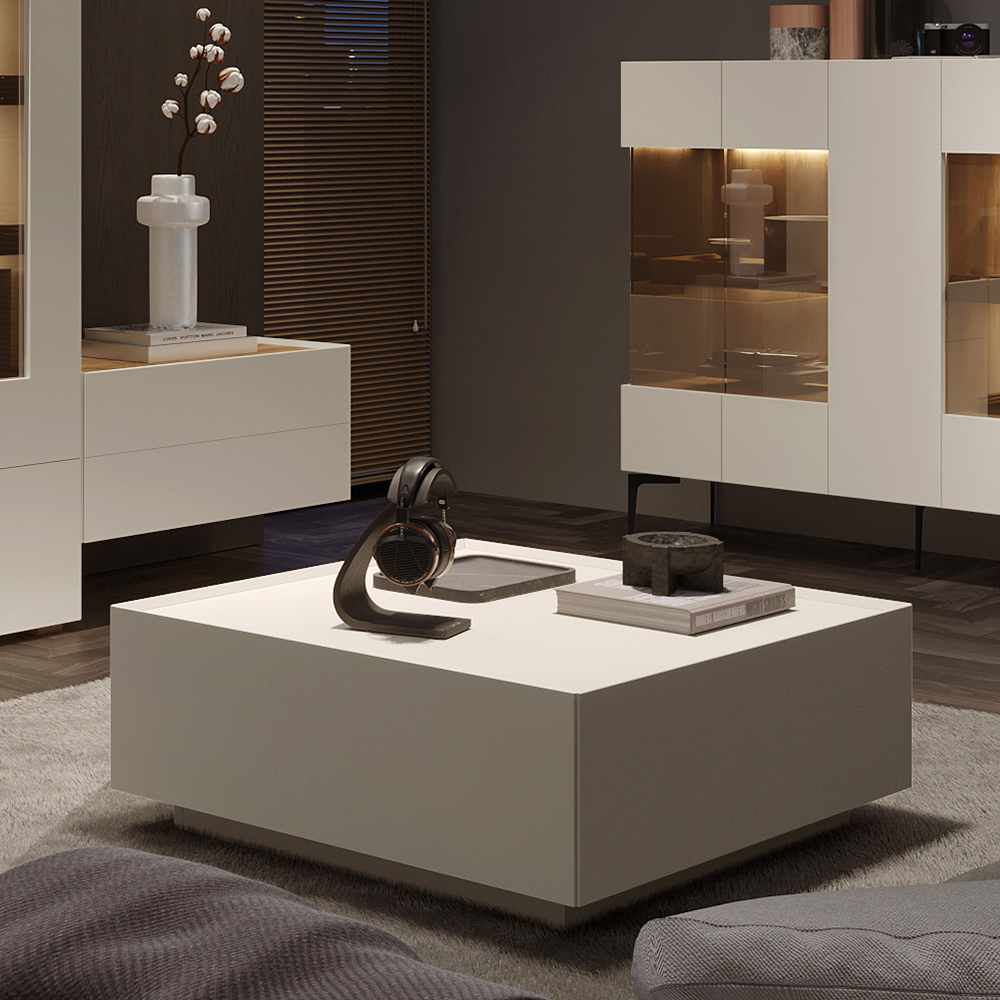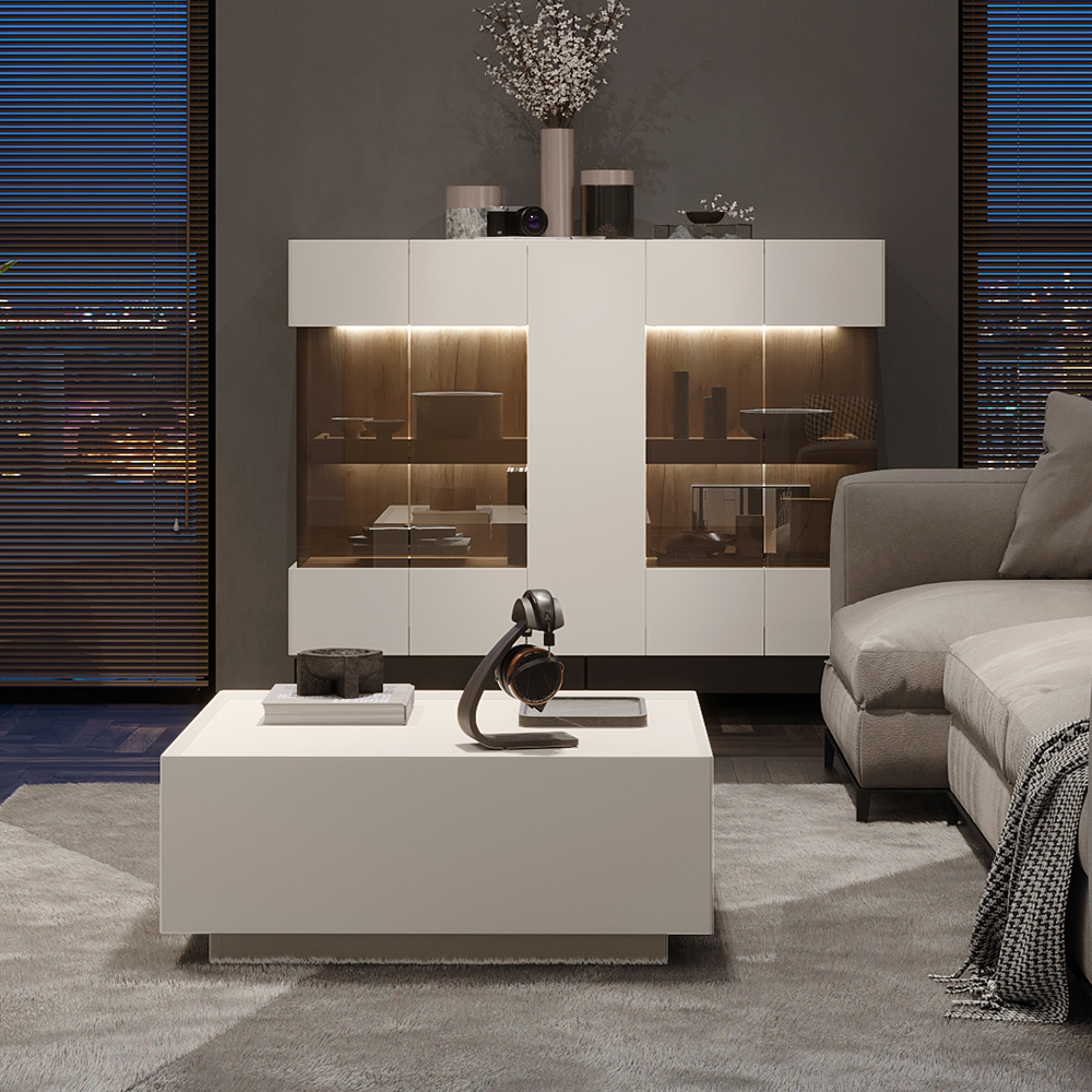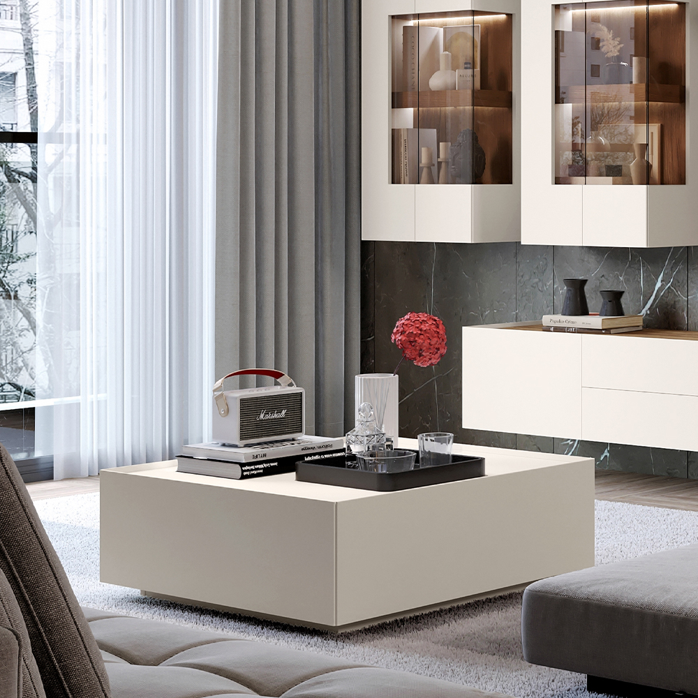 Klub sto za dnevnu sobu iz kolekcije SKY45 sa dve fioke dizajnerski iskorak u oblikovanju i načinu spajanja bočnih strana i frontova pod uglom od 45 stepeni