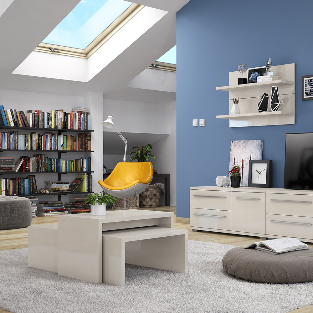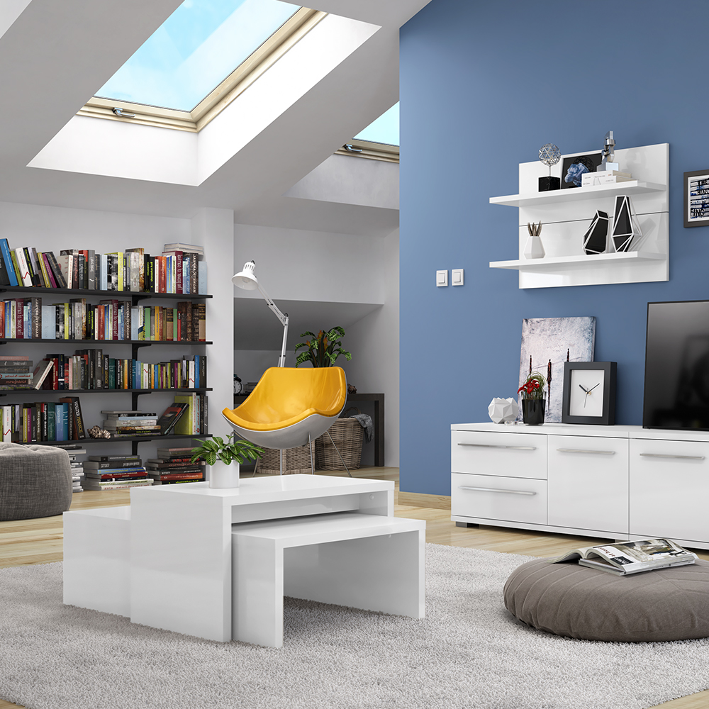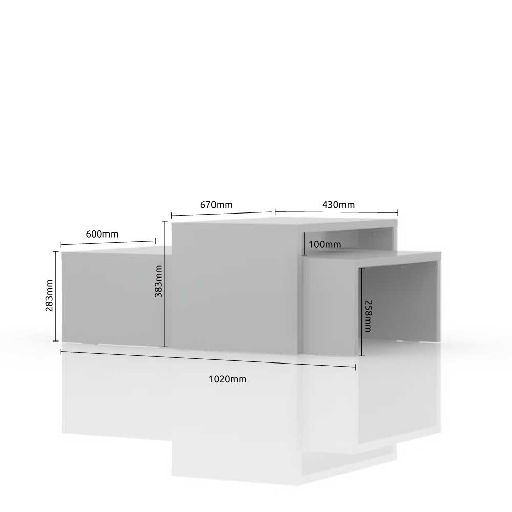 Set klub stolova kompletno lakiranih u visokom sjaju najnovije tehnologije. Oba elementa lakirana su UV lakom u visokom sjaju, u toploj bež ili kristalno beloj boji.