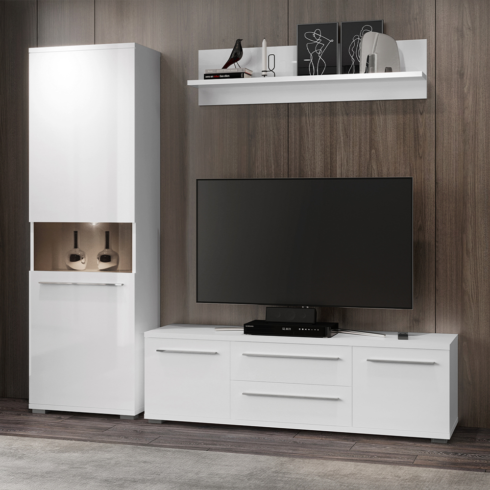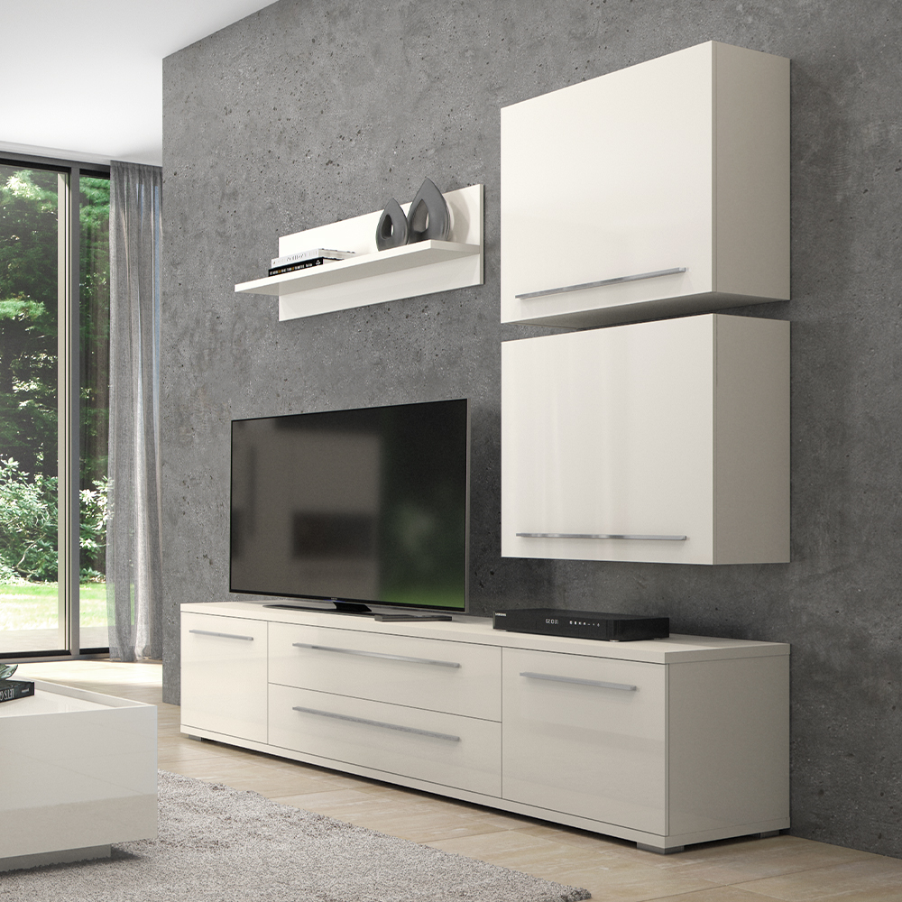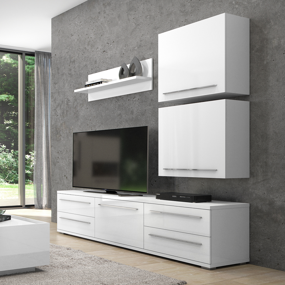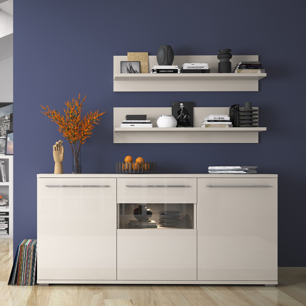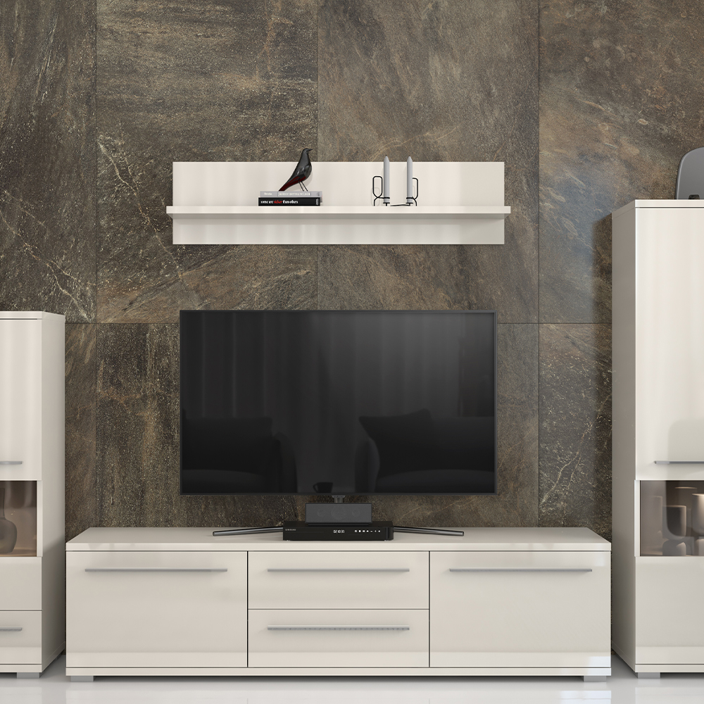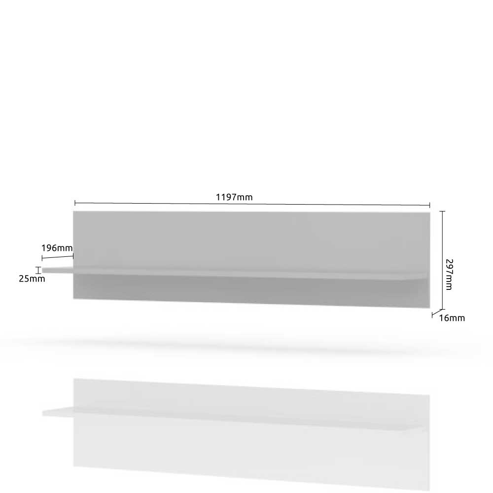 Viseća polica, širine 120cm, kompletno lakirana UV lakom u visokom sjaju najnovije tehnologije. Element je opremljen okovom za kačenje na zid