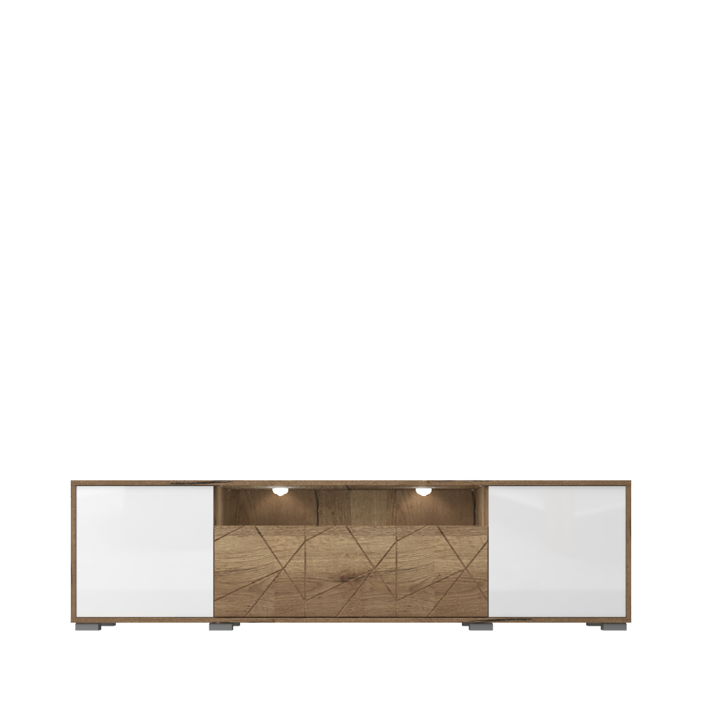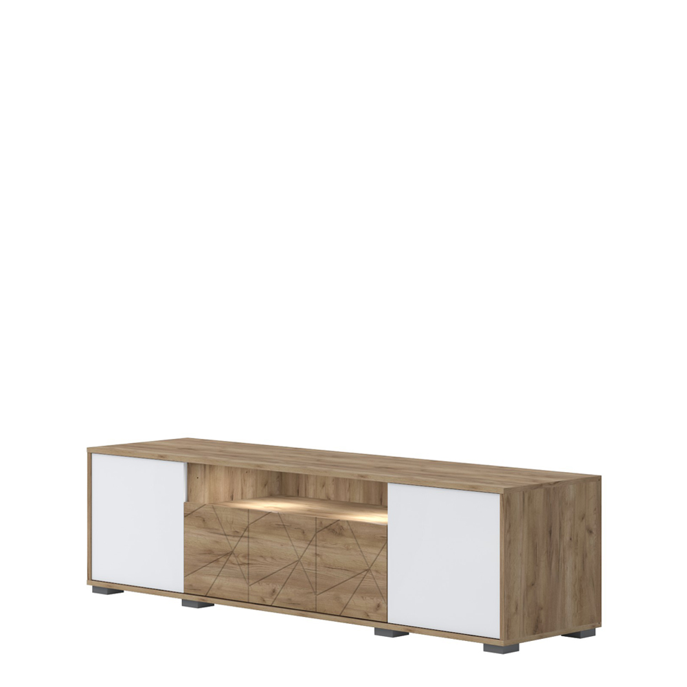 TV sto za dnevnu sobu, iz kolekcije STELA, sa dva krila, otvorenom policom i fiokom, bez ručica, u skladu sa novim trendovima oblikovanja nameštaja