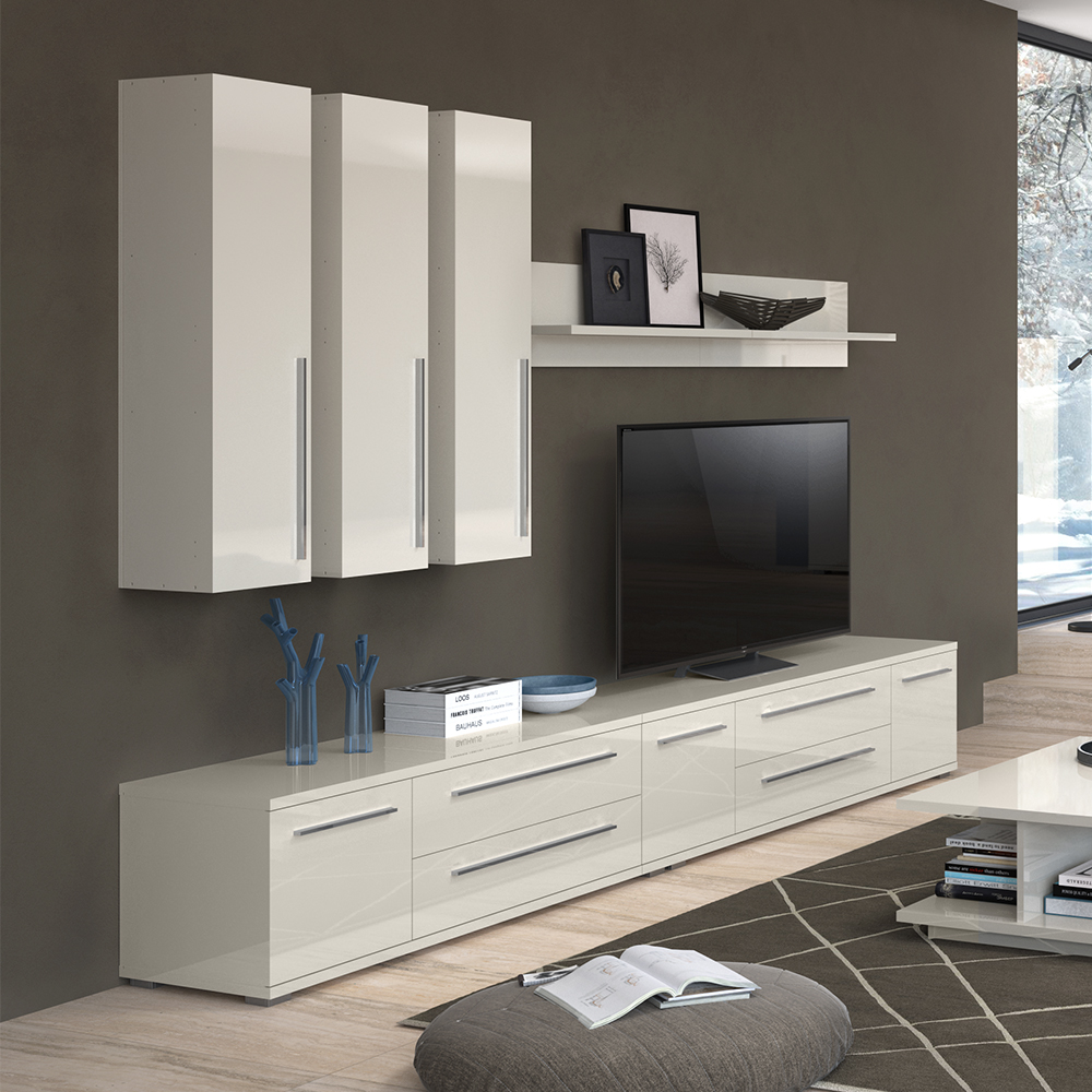 - Front i kompletan korpus elementa lakirani su UV lakom u visokom sjaju, u toploj bež ili kristalno beloj boji