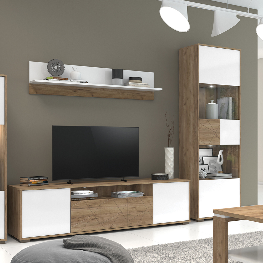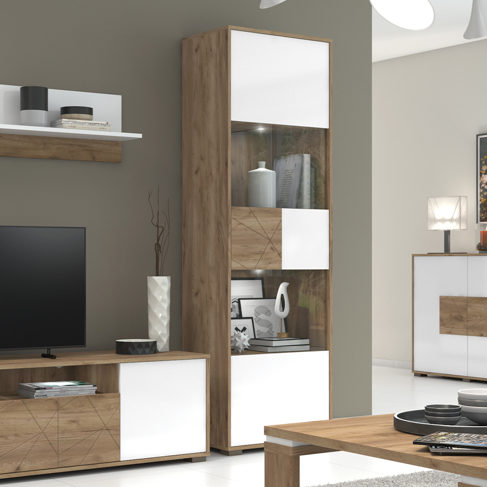 Vitrina za dnevnu sobu iz kolekcije STELA, sa jednim krilom sa staklom, bez ručica, namenjena ljubiteljima savremenog nameštaja.