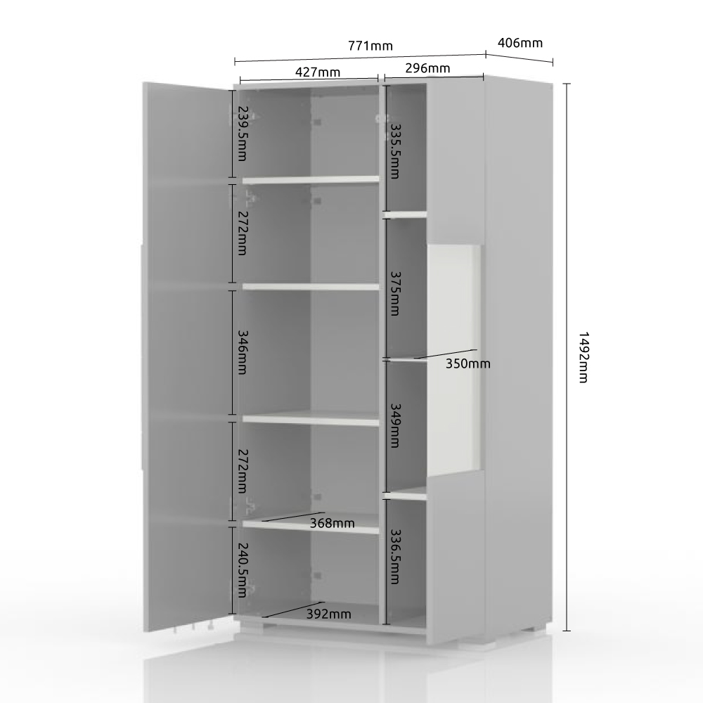 Vitrina za dnevnu sobu iz kolekcije STELA u beloj boji sa dva krila. Ovaj element nameštaja je savremenog dizajna, bez ručica i u skladu je sa novim trendovima oblikovanja nameštaja.