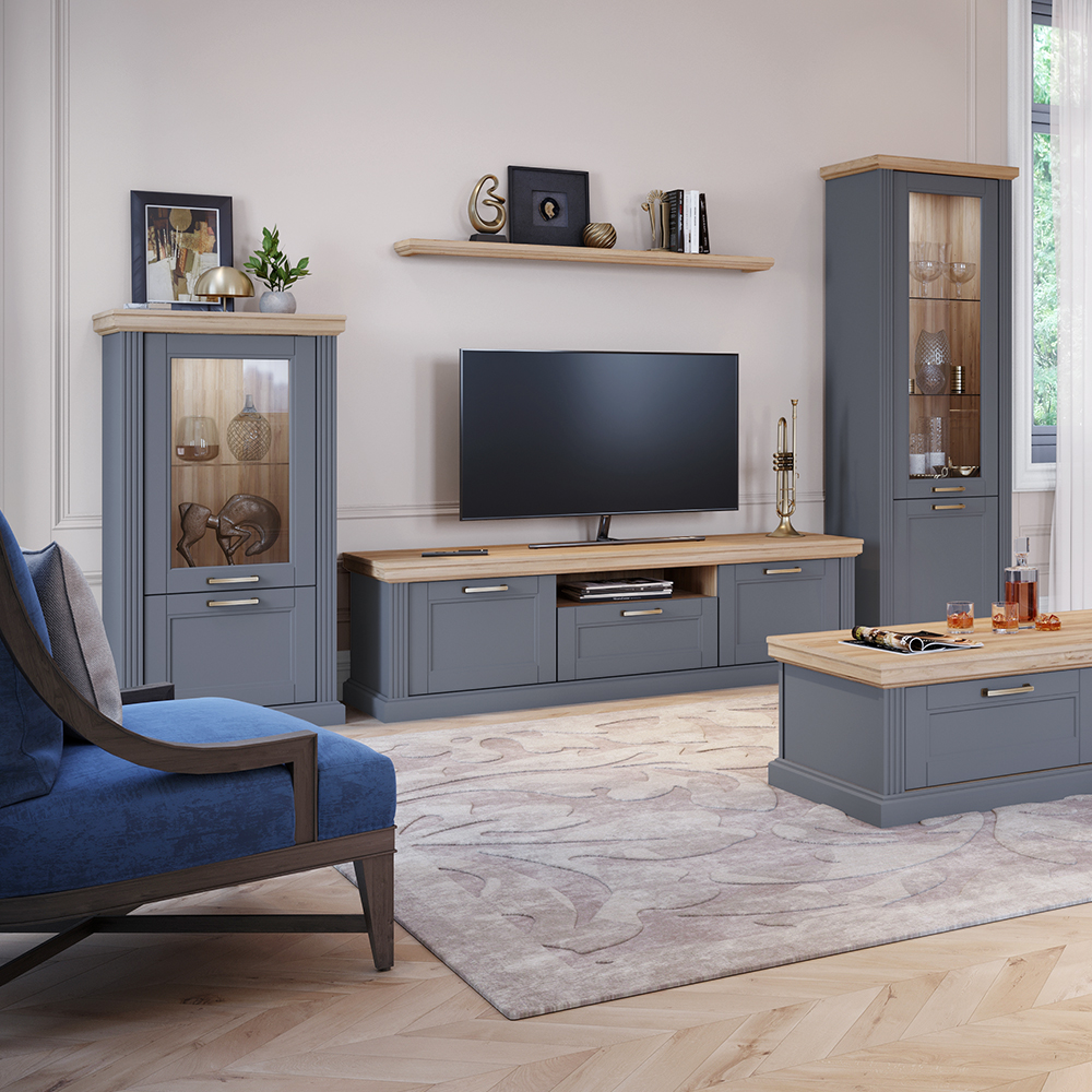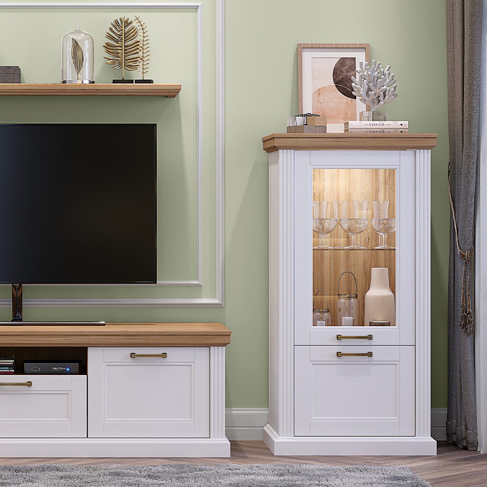 Luksuzna vitrina iz kolekcije TARA sa jednim staklenim i jednim punim krilom.