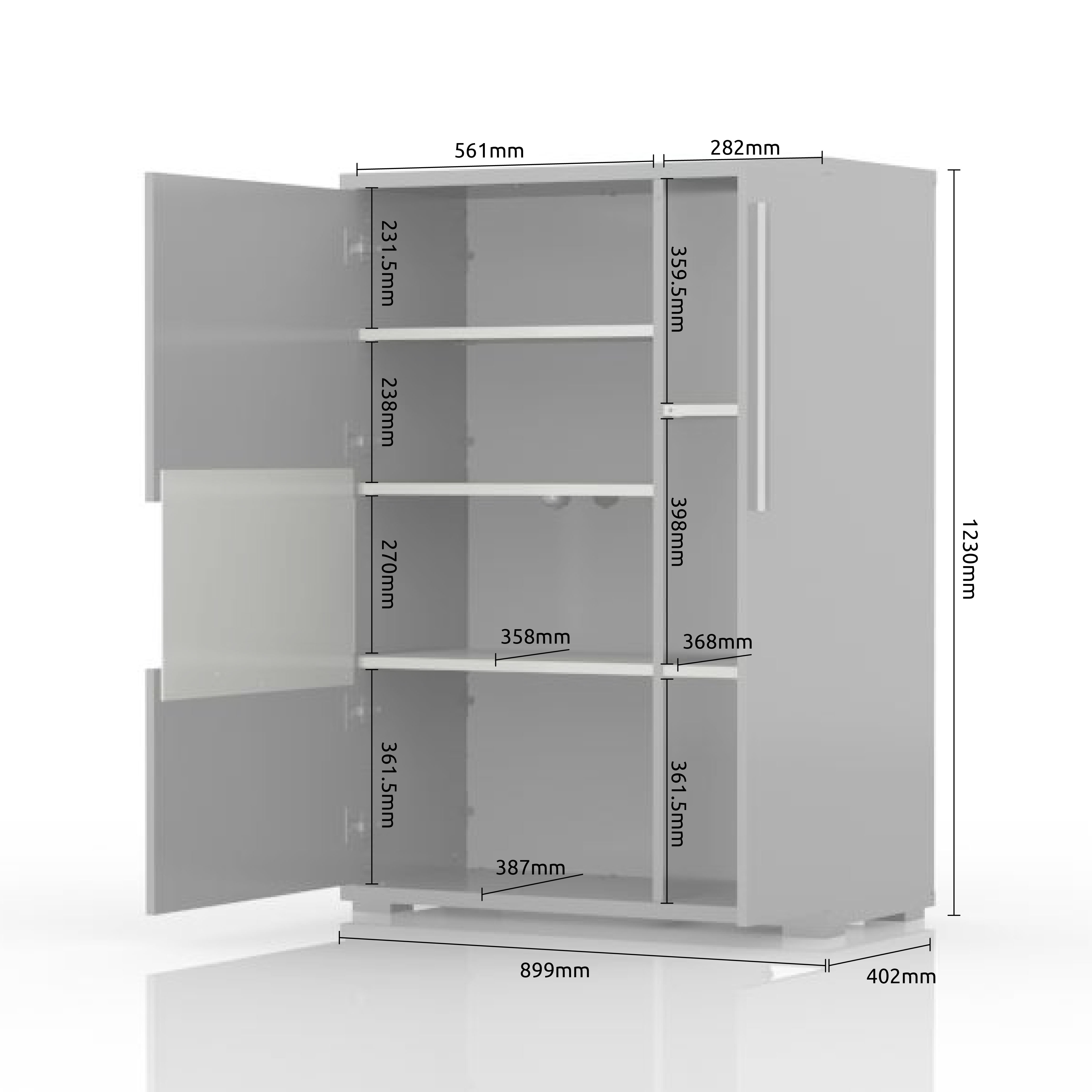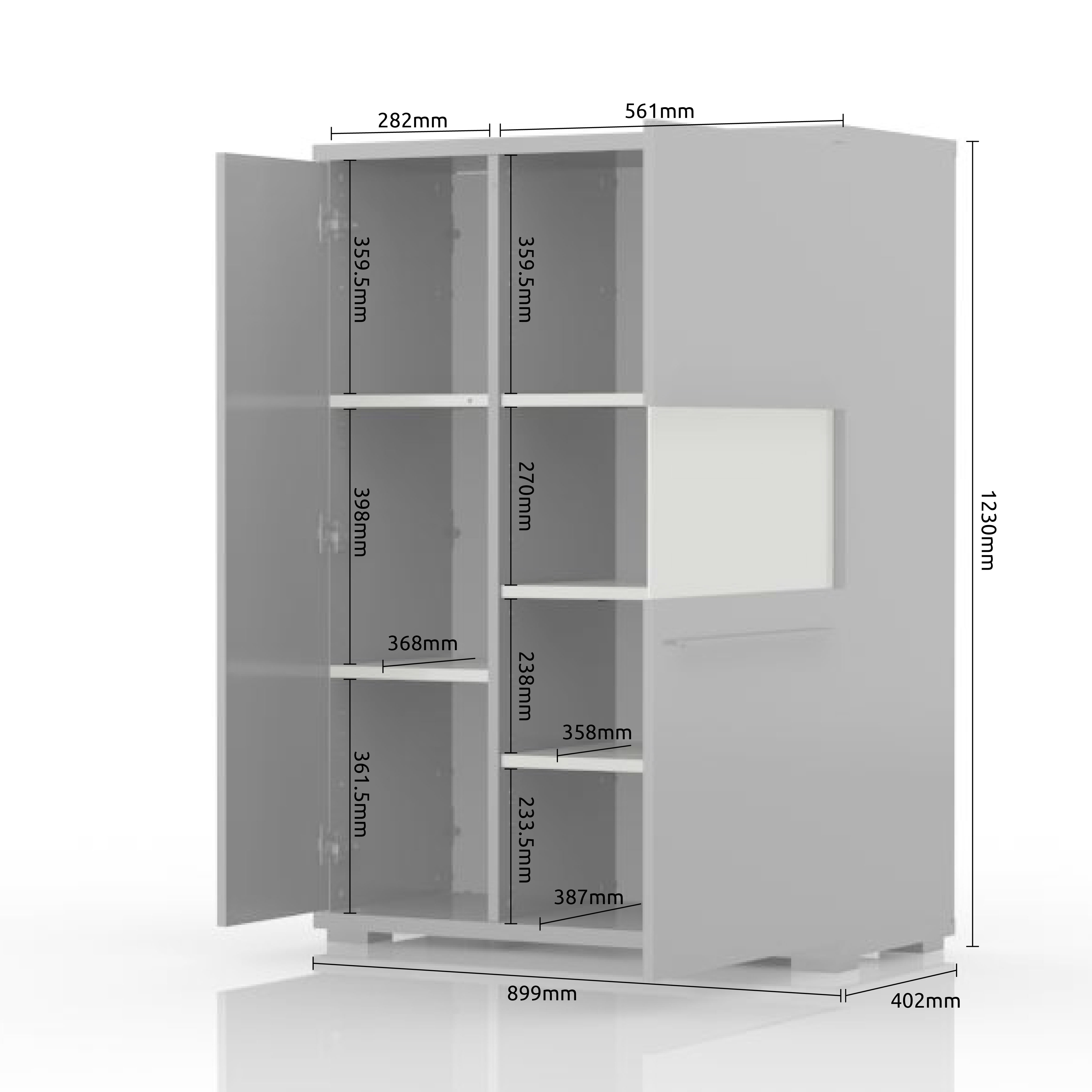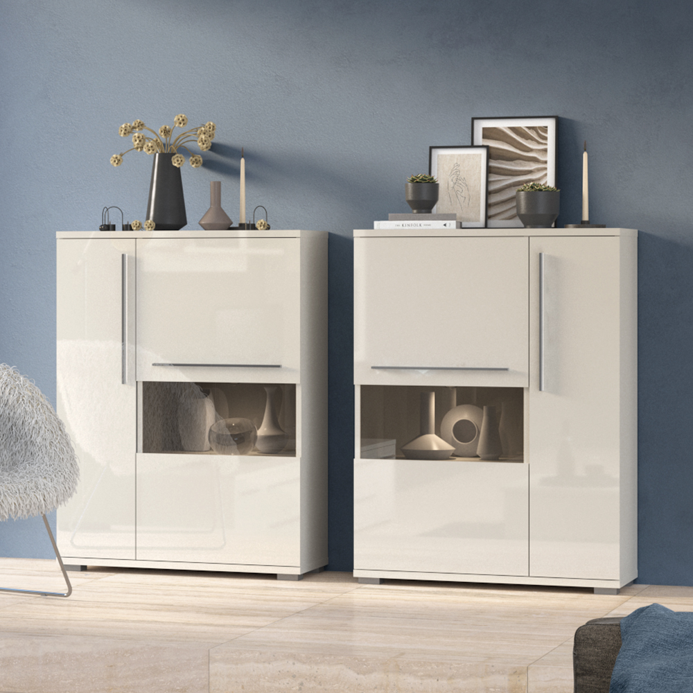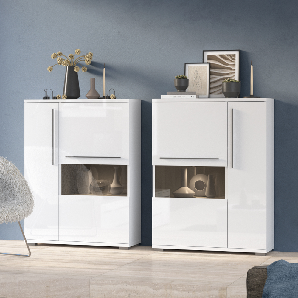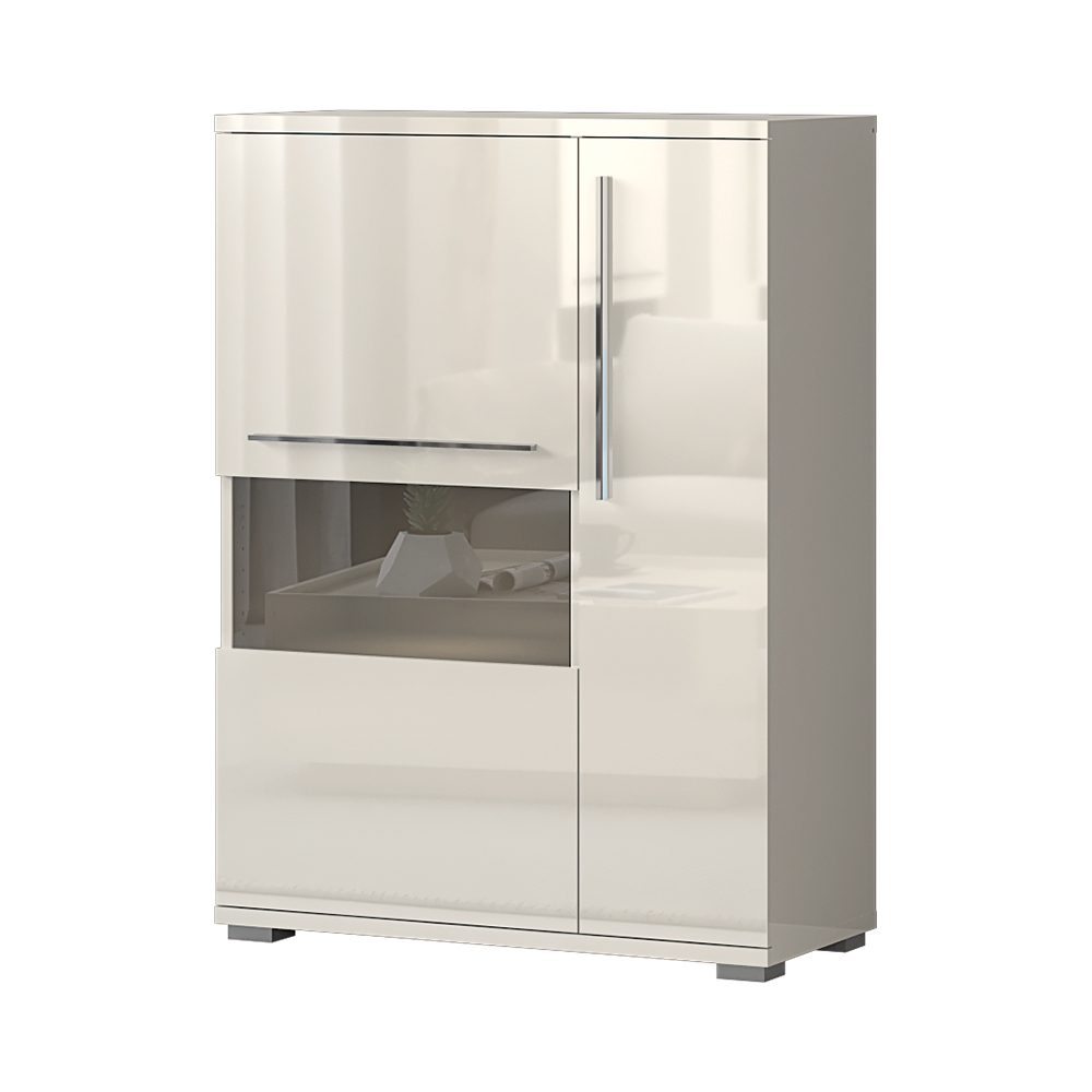 - Funkcionalna vitrina sa jednim punim krilom I jednim sa staklenim detaljem, dizajnirane geometrijske forme.